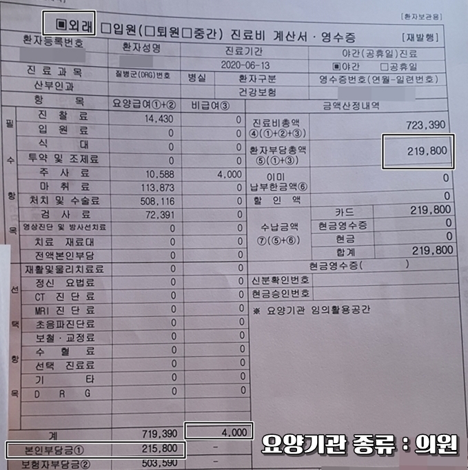 총 병원비 : 219,800원